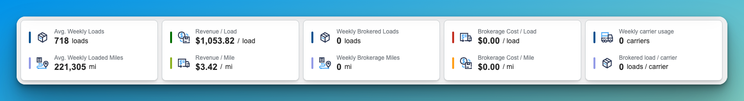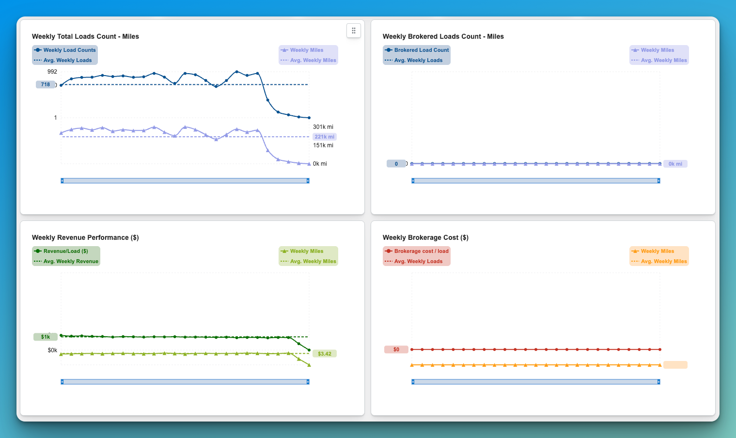 Large swings in weekly loads or miles may indicate seasonality, customer concentration, or irregular freight patterns.