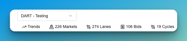 The Trends dashboard provides a summary view of the study results and helps you quickly understand the size, performance, and makeup of the optimized network before reviewing individual Markets, Lanes, Bids, or Cycles.