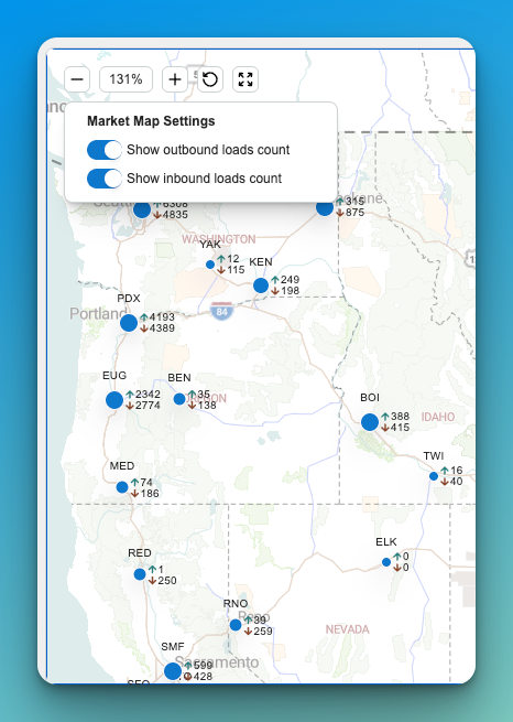 Use this view to identify balanced vs. imbalanced markets and understand where freight naturally concentrates.